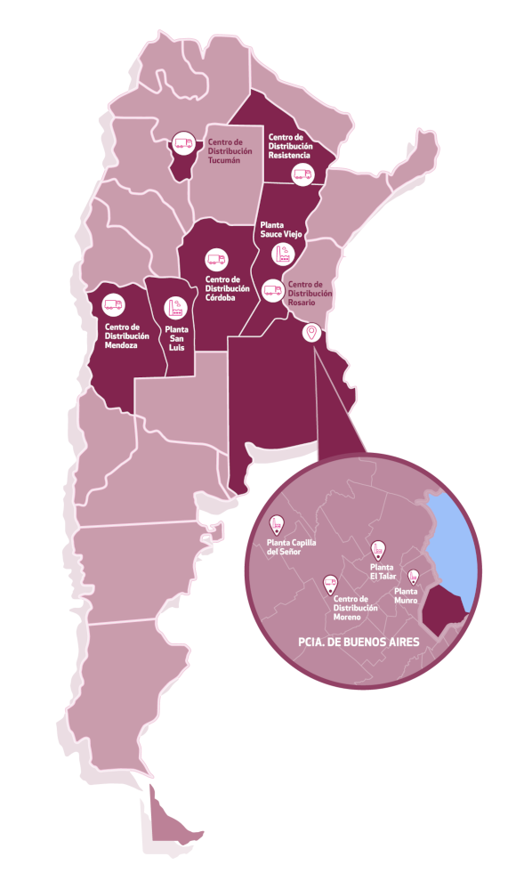Operamos en 5 plantas industriales y contamos con una red de logística de alcance federal conformada por 11 centros de distribución.